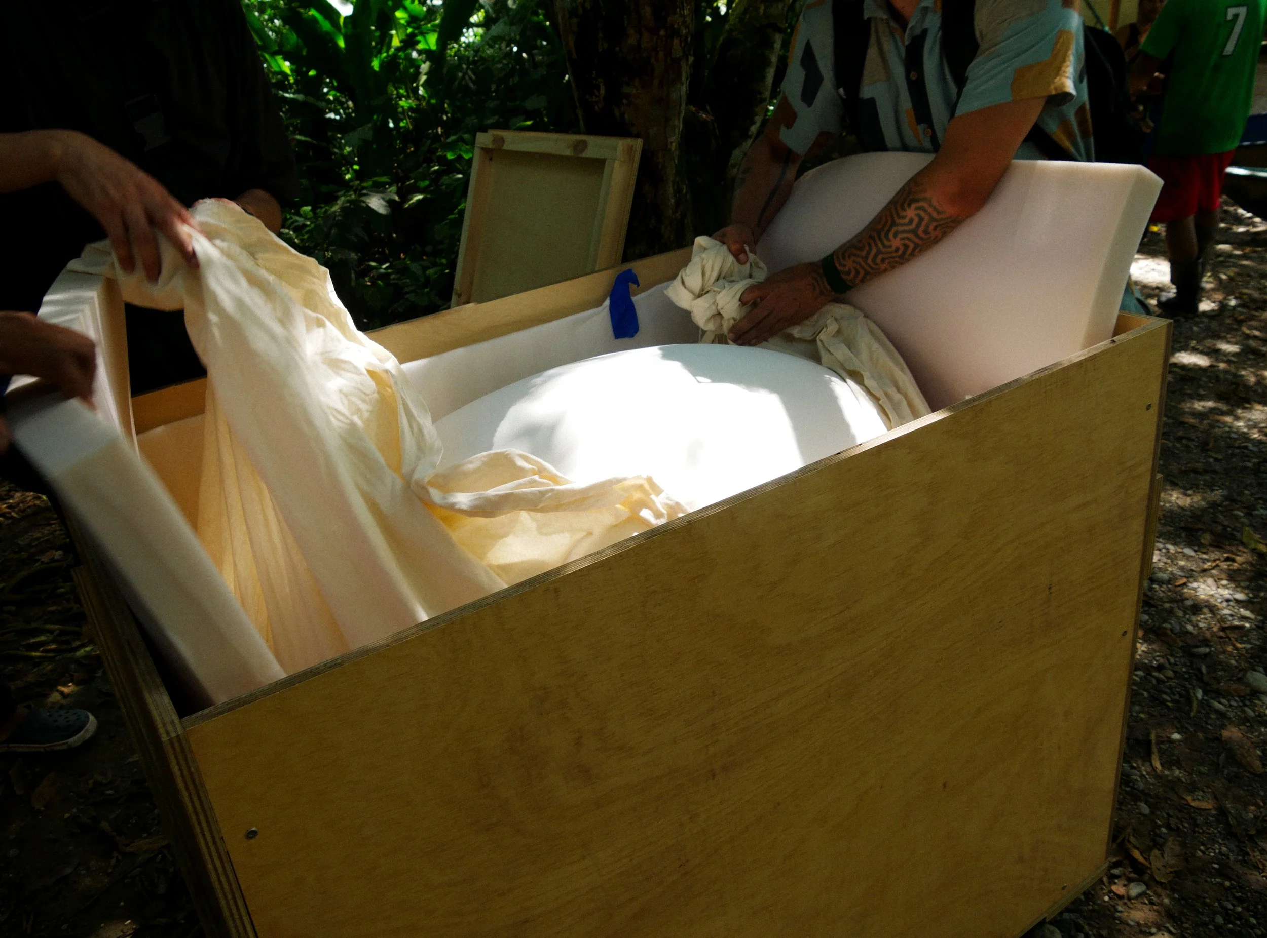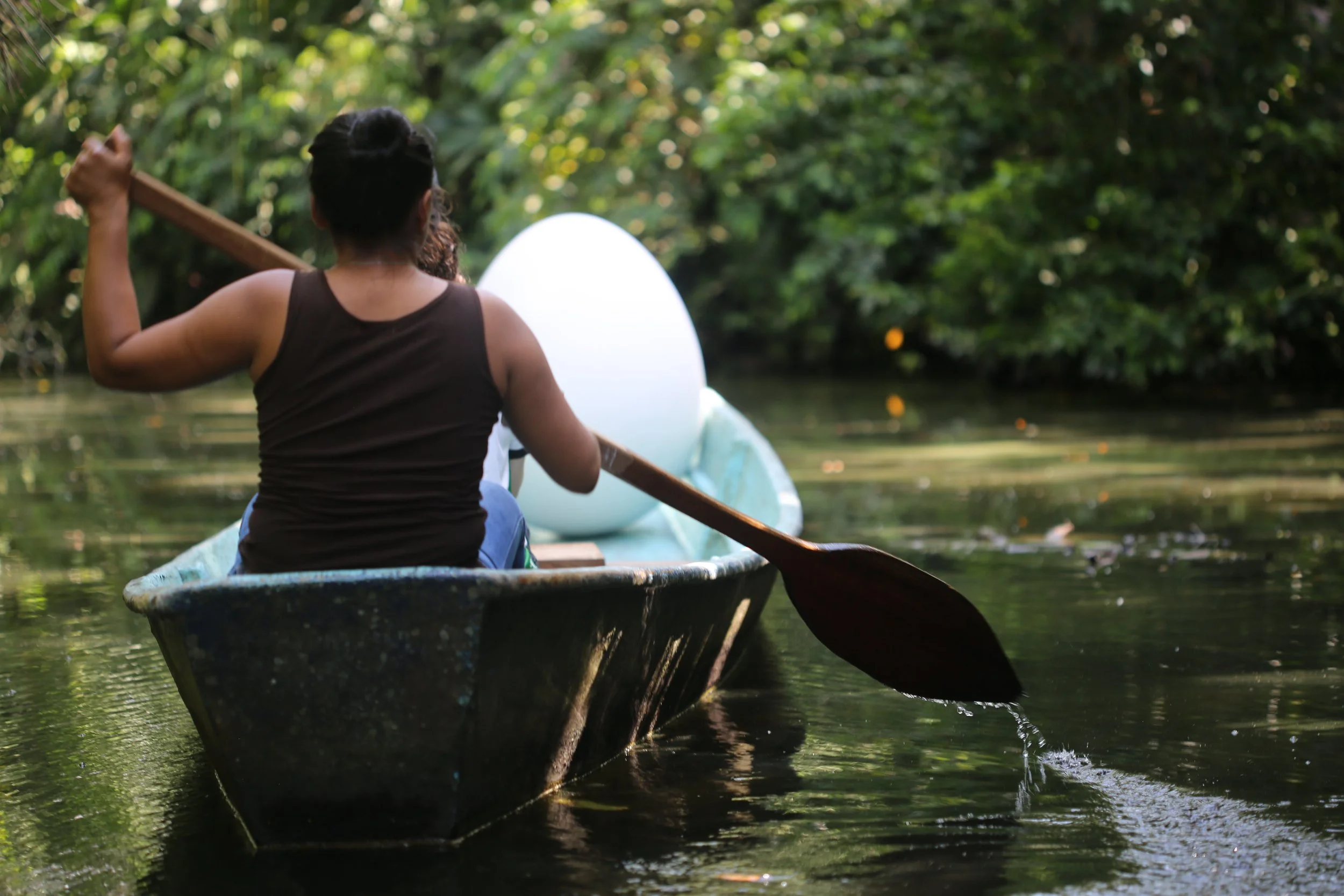 E.D.G.A.R. is a one-meter-tall egg through which he hopes to free Ecuador from the bad energies that haunt it. The dynamic is simple: although the exact origin date is unknown, for centuries the egg cleansing ritual has been used to protect, heal, or release negative energies or the evil eye. And that’s precisely what he hopes to achieve by taking the sculpture to different places across Ecuador.